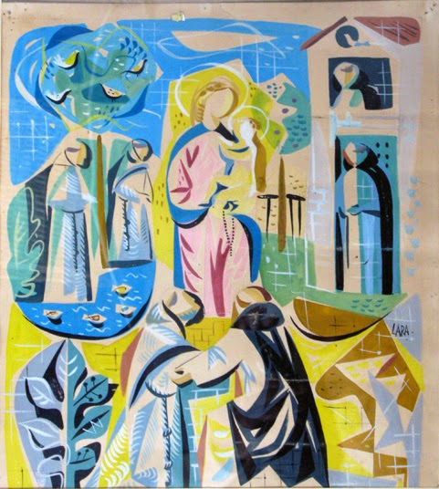 Durante 1956 y al tiempo que preparaba las pinturas del Teatro Real de Madrid realizó unas vidrieras para el Colegio Mayor “Aquinas” de Madrid y para la Universidad laboral de Gijón, además de sus habituales colaboraciones en revistas.