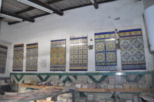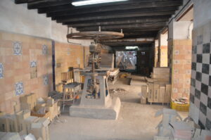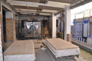 Como la fábrica era muy grande, se puede ver la sala de exposiciones que se comunicaba con el despacho de administración, la sala para realizar los bocetos y estarcidos de la primera planta, la azotea con los lucernarios, así como las piletas, hornos, almela y patio que los precedían, situados estos últimos en la planta baja.
