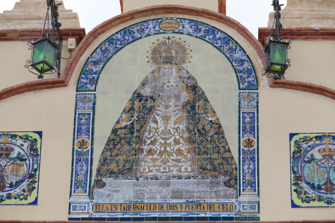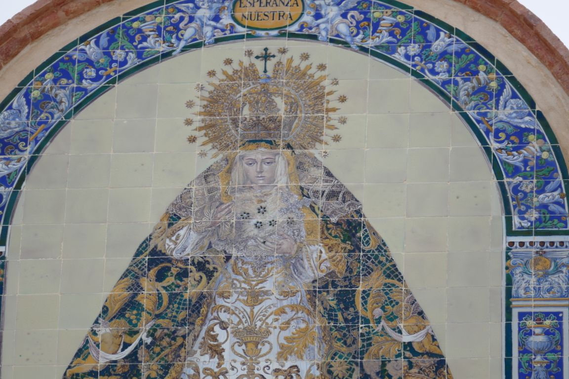 00032. Retablo cerámico. Esperanza Macarena. Arco de la Macarena. Calle Resolana. Sevilla.