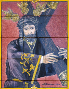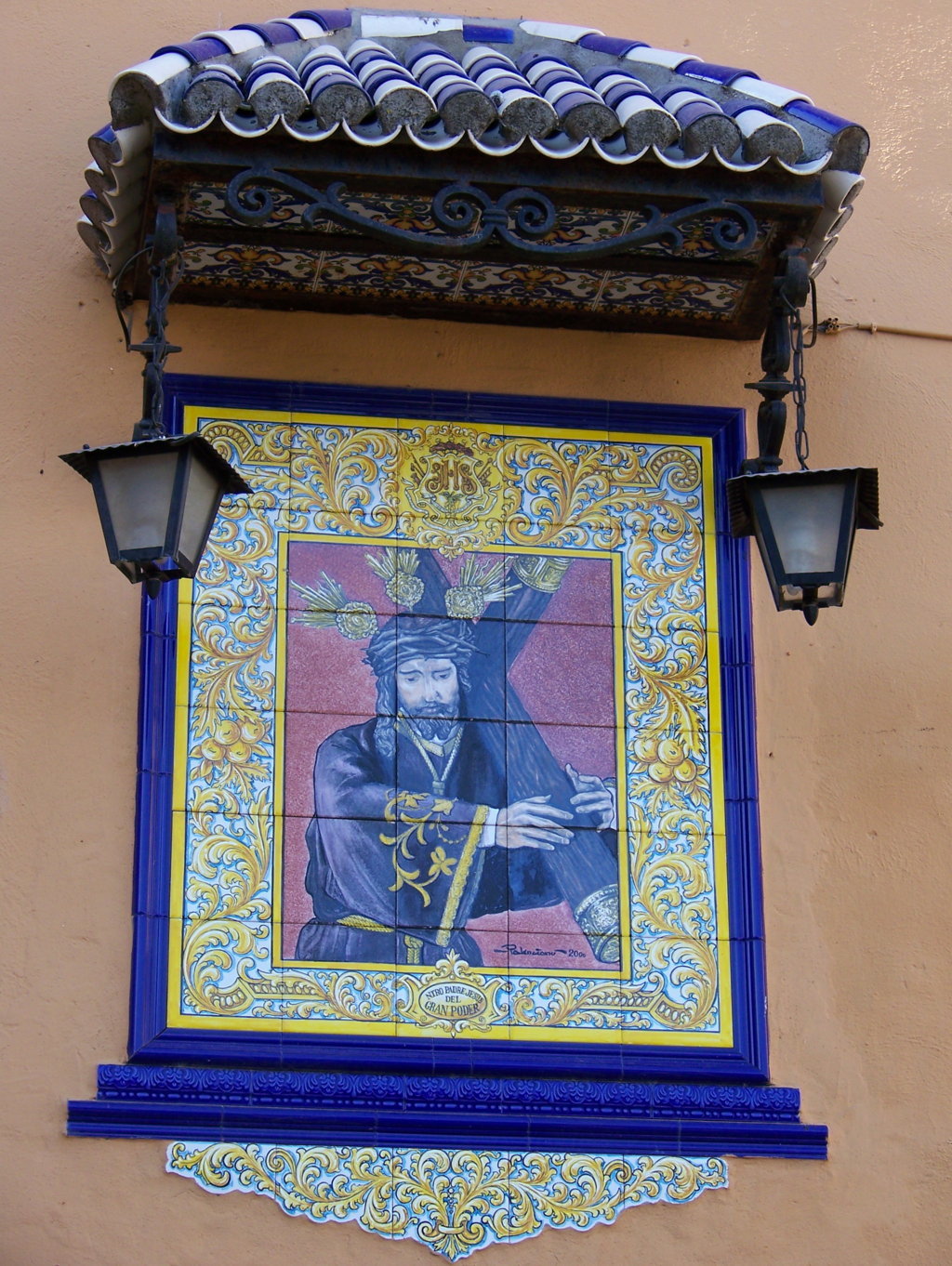 Inicio Obras 00505. Retablo cerámico. Jesús del Gran Poder. Andújar. 00505. Retablo cerámico. Jesús del Gran Poder. Andújar. Código00505Tipo de obraRetablo cerámicoFunciónDevocionalTipo de panelPictóricoAutorPalenciano Ruiz, PedroFuente de autoríaFirmadoCronología2000Fuente de la cronologíaDatado en la obraDimensiones0,75 m. x 0,90 m. (aprox.)Pieza datadaSi Lugar exacto donde se encuentraFachada de la Iglesia de San Miguel. Plaza de EspañaPoblaciónAndújarProvinciaJaénPaísEspañaSituada en elExteriorLugar de producciónAndújarZona de producciónAndalucíaTécnica decorativaAzulejo plano pintadoTema de decoración o temáticaReligiosa - pasionistaPersonajes representadosJesús de NazaretAdvocacionesGran Poder Autor de las fotografíasAntonio Entrena Aznarte. Julio 2006