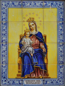 Inicio Obras 00519. Retablo cerámico. Virgen del Rosario. Hospital de la Cruz Roja. Sevilla. (Desaparecido) 00519. Retablo cerámico. Virgen del Rosario. Hospital de la Cruz Roja. Sevilla. (Desaparecido) Código00519Tipo de obraRetablo cerámicoFunciónDevocionalTipo de panelPictóricoAutorChaves Tejada, AlfonsoTallerRamos Rejano, FábricaFuente de autoríaTaller: firmado. Autor: por operación comparativaCronologíaDécada de 1950Fuente de la cronologíaEstimaciónDimensiones0,60 m. x 0,80 m. (aprox.)Pieza datadaNo Lugar exacto donde se encuentraDependencias del Hospital de la Cruz Roja. Avenida de la Cruz Roja, 1. (Desaparecido)PoblaciónSevillaProvinciaSevillaPaísEspañaSituada en elInteriorLugar de producciónSevillaZona de producciónAndalucíaTécnica decorativaAzulejo plano pintadoTema de decoración o temáticaReligiosa - letíficaEscenaVirgen con el NiñoPersonajes representadosJesús de Nazaret NiñoVirgen MaríaAdvocacionesRosarioEstado de conservaciónDeficiente. Con roturas Más datosEsta obra fue retirada de su ubicación en el interior del hospital a finales de 2010, sin que sepamos si se conservó o se destruyó. ConjuntoPatrimonio oculto o perdidoSevilla. Hospital de la Cruz Roja "Victoria Eugenia". Autor de las fotografíasJosé Chaves Romero de la Osa. Septiembre 2010