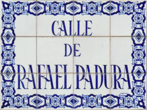 Inicio Obras 01002. Rótulo de la calle de Rafael Padura. Sevilla. 01002. Rótulo de la calle de Rafael Padura. Sevilla. Código01002Tipo de obraPanel de azulejosRótulo de calleFunciónInformación urbanaTipo de panelPictóricoAutorSánchez Cueto, JuanTallerCerámica Santa Ana. FábricaFuente de autoríaFirmadoCronología1985 ca.Fuente de la cronologíaComunicación personal de Francisco Vallecillo MartínezDimensiones0,60 m. x 0,45 m. (aprox.)Pieza datadaNo Lugar exacto donde se encuentraFachada de domicilio particular. Calle Rafael Padura esquina con calle SierpesPoblaciónSevillaProvinciaSevillaPaísEspañaSituada en elExteriorLugar de producciónSevillaZona de producciónAndalucíaTécnica decorativaAzulejo plano pintadoTema de decoración o temáticaEpigráfica Autor de las fotografíasAntonio Entrena Aznarte. Agosto 2021
