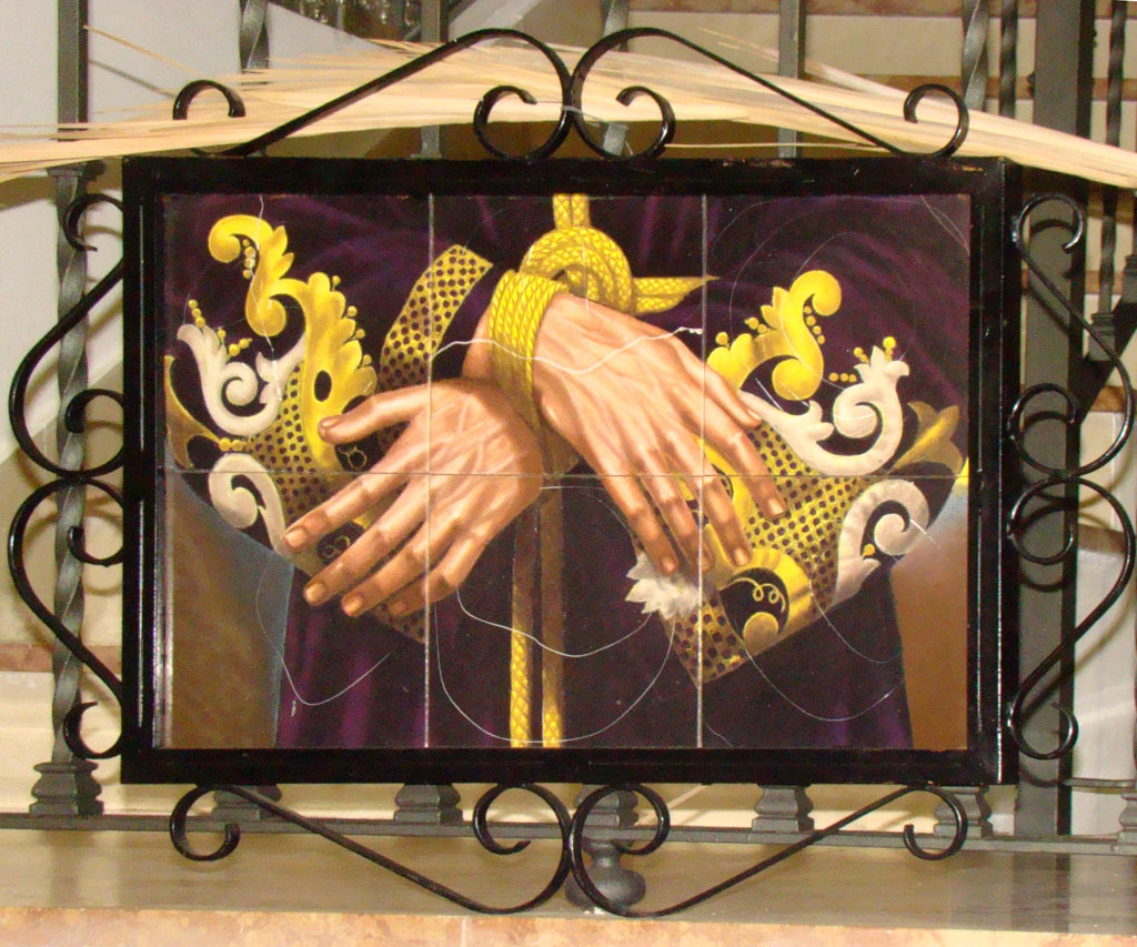 En el interior de la Casa de Hermandad se conserva un fragmento de este retablo con el detalle de las manos de la imagen de Jesús Cautivo. Algún defecto hizo desechar esas piezas y la Hermandad los conserva. La imagen se adjunta en la galería.