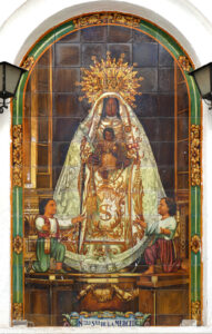 Inicio Obras 01220. Retablo cerámico. Virgen de la Merced. Jerez de la Frontera. Cádiz. 01220. Retablo cerámico. Virgen de la Merced. Jerez de la Frontera. Cádiz. Código01220Tipo de obraRetablo cerámicoFunciónDevocionalTipo de panelPictóricoAutorRomero Navarro, ManuelTallerMensaque Rodríguez y Compañía. FábricaFuente de autoríaPor operación comparativaCronologíaDécada de 1960Fuente de la cronologíaEstimaciónDimensiones1,10 m. x 1,90 m. (aprox.)Pieza datadaNo Lugar exacto donde se encuentraArco en el callejón de los NegrosPoblaciónJerez de la FronteraProvinciaCádizPaísEspañaSituada en elExteriorLugar de producciónSevillaZona de producciónAndalucíaTécnica decorativaAzulejo plano pintadoTema de decoración o temáticaReligiosa - letíficaEscenaVirgen con el NiñoPersonajes representadosJesús de Nazaret NiñoVirgen MaríaAdvocacionesMercedMerced (Patrona de Jerez de la Frontera) Autor de las fotografíasAntonio Entrena Aznarte. Noviembre 2023