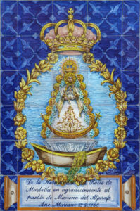 Inicio Obras 01248. Retablo cerámico. Virgen del Rocío. Cruz de Sevilla. Mairena del Aljarafe. Sevilla. 01248. Retablo cerámico. Virgen del Rocío. Cruz de Sevilla. Mairena del Aljarafe. Sevilla. Código01248Tipo de obraRetablo cerámicoFunciónConmemorativaDevocionalTipo de panelPictóricoAutorFranco Pérez, FranciscoFuente de autoríaFirmadoCronología1988Fuente de la cronologíaDatado en la obraDimensiones0,60 m. x 0,90 m. (aprox.)Pieza datadaSi Lugar exacto donde se encuentraPedestal de la Cruz de Sevilla. Confluencia de las calles Nueva y ZurraquePoblaciónMairena del AljarafeProvinciaSevillaPaísEspañaSituada en elExteriorLugar de producciónMairena del AljarafeZona de producciónAndalucíaTécnica decorativaAzulejo plano pintadoTema de decoración o temáticaEpigráficaReligiosa - letíficaEscenaVirgen con el NiñoPersonajes representadosJesús de Nazaret NiñoVirgen MaríaAdvocacionesRocíoRocío (Almonte) Autor de las fotografíasAlfonso García García. Abril 2008