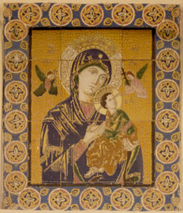 Inicio Obras 01271. Retablo cerámico. Virgen del Perpetuo Socorro. Sevilla. (Desaparecido) 01271. Retablo cerámico. Virgen del Perpetuo Socorro. Sevilla. (Desaparecido) Código01271Tipo de obraRetablo cerámicoFunciónDevocionalTipo de panelPictóricoAutorDesconocidoCronologíaDécada de 1920Fuente de la cronologíaEstimaciónDimensiones0,60 m. x 0,70 m. (aprox.)Pieza datadaNo Lugar exacto donde se encuentraFachada de la Clínica Santa Isabel. Calle Maese Farfán, 6. (Desaparecido)PoblaciónSevillaProvinciaSevillaPaísEspañaSituada en elExteriorLugar de producciónSevillaZona de producciónAndalucíaTécnica decorativaMixta de cuerda seca y azulejo plano pintadoTema de decoración o temáticaReligiosa - letíficaEscenaVirgen con el NiñoPersonajes representadosÁngelJesús de Nazaret NiñoVirgen MaríaAdvocacionesPerpetuo Socorro Más datosEl edificio en el que estaba el retablo fue demolido en 2022. Desconocemos si el panel se conserva o fue destruido. Autor de las fotografíasAndrés González Ladera. Agosto 2013