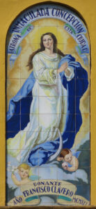 Inicio Obras 01307. Retablo cerámico. Inmaculada Concepción. La Línea de la Concepción. Cádiz. 01307. Retablo cerámico. Inmaculada Concepción. La Línea de la Concepción. Cádiz. Código01307Tipo de obraRetablo cerámicoFunciónDevocionalTipo de panelPictóricoAutorAcosta Palop, EduardoTallerMensaque y Vera, José (Hijo de). FábricaFuente de autoríaPor operación comparativaCronología1941Fuente de la cronologíaDatado en la obraDimensiones0,70 m. x 1,70 m. (aprox.)Pieza datadaSi Lugar exacto donde se encuentraFachada principal de la Iglesia Arciprestal de la Inmaculada Concepción. Plaza de la IglesiaPoblaciónLa Línea de la ConcepciónProvinciaCádizPaísEspañaSituada en elExteriorLugar de producciónSevillaZona de producciónAndalucíaTécnica decorativaMixta de cuerda seca y azulejo plano pintadoTema de decoración o temáticaReligiosa - letíficaReproducción de cuadroPersonajes representadosÁngelVirgen MaríaAdvocacionesInmaculada Fuente gráficaLienzo de Bartolomé Esteban Murillo conservado en el Museo del Prado Fuente iconográfica utilizada por el pintor. Fotografía: Museo del Prado. Autor de las fotografíasAlfonso García García. Agosto 2025