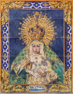 Inicio Obras 01761. Retablo cerámico. Virgen de la Esperanza Macarena. Sevilla. 01761. Retablo cerámico. Virgen de la Esperanza Macarena. Sevilla. Código01761Tipo de obraRetablo cerámicoFunciónDevocionalTipo de panelPictóricoAutorDesconocidoTallerMontalván. FábricaFuente de autoríaFirmadoCronologíaDécada de 1920Fuente de la cronologíaEstimaciónDimensiones0,80 m. x 1,00 m. (aprox.)Pieza datadaNo Lugar exacto donde se encuentraMuseo de la Hermandad de la MacarenaPoblaciónSevillaProvinciaSevillaPaísEspañaSituada en elInteriorLugar de producciónSevillaZona de producciónAndalucíaTécnica decorativaAzulejo plano pintadoTema de decoración o temáticaReligiosa - pasionistaPersonajes representadosVirgen MaríaAdvocacionesEsperanzaEsperanza Macarena ConjuntoSevilla. Basílica de la Macarena Autor de las fotografíasÁngel de Paz Moreno. Mayo 2017