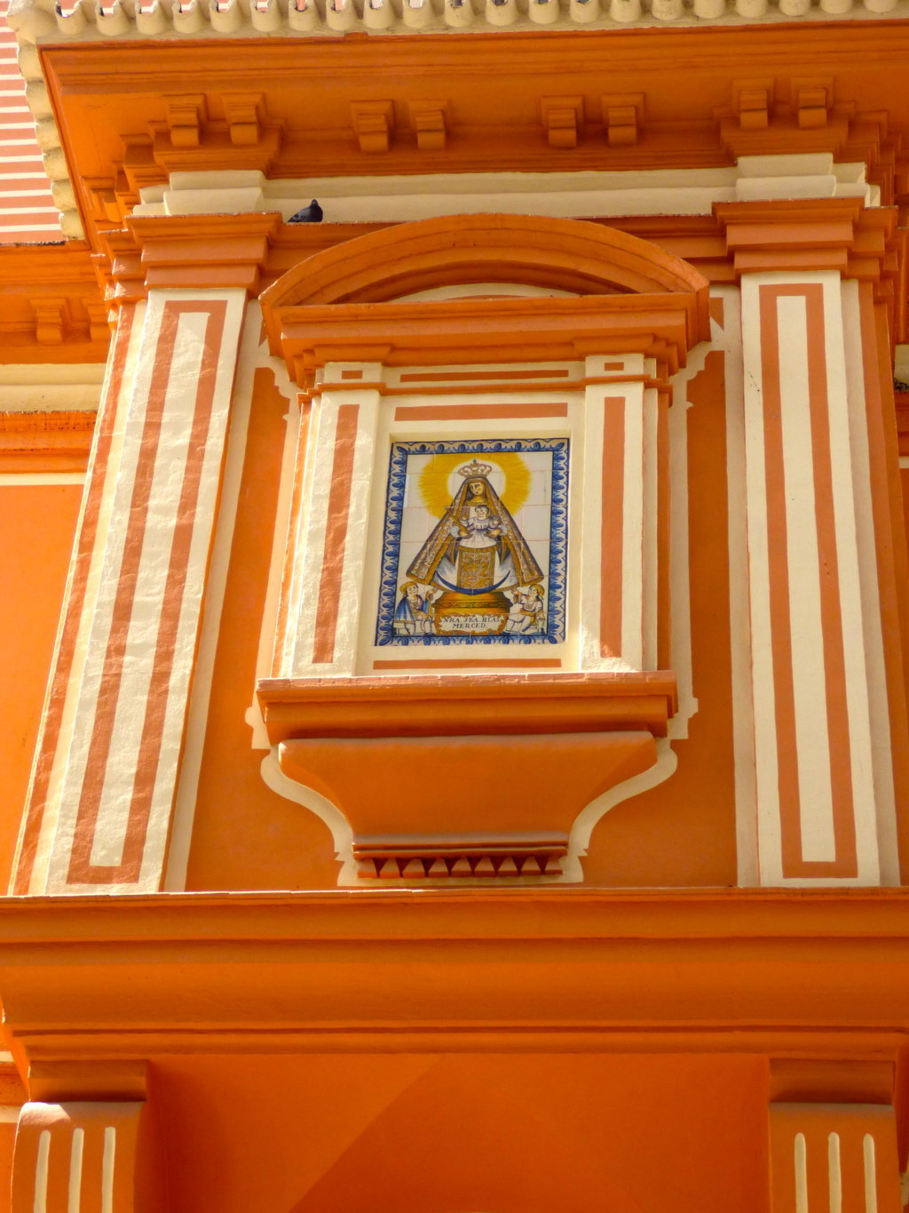 Inicio Obras 04237. Retablo cerámico. Virgen de la Merced. Catedral. Huelva. 04237. Retablo cerámico. Virgen de la Merced. Catedral. Huelva. Código04237Tipo de obraRetablo cerámicoFunciónDevocionalTipo de panelPictóricoAutorDesconocidoCronologíaDécada de 1950Fuente de la cronologíaEstimaciónDimensiones0,60 m. x 0,90 m. (aprox.)Pieza datadaNo Lugar exacto donde se encuentraFachada trasera de la Catedral de Nuestra Señora de la Merced. Calle Sor Paula ArzolaPoblaciónHuelvaProvinciaHuelvaPaísEspañaSituada en elExteriorTécnica decorativaAzulejo plano pintadoTema de decoración o temáticaReligiosa - letíficaEscenaVirgen con el NiñoPersonajes representadosJesús de Nazaret NiñoVirgen MaríaAdvocacionesMercedMerced (Patrona de Jerez de la Frontera) BibliografíaGonzález García, Francisco Javier. (2000). Retablos cerámicos de Huelva. Revista El Contraguía. Más datosEl retablo copia una obra expuesta en la colección permanente de cerámica del Real Alcázar de Sevilla. Autor de las fotografíasAndrés González Ladera. Mayo 2009. Manuel Quiles Pastor. Junio 2015