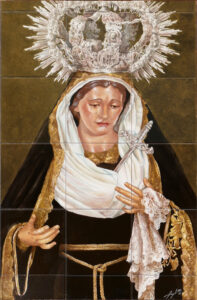 Inicio Obras 04443. Retablo cerámico. Virgen de las Tristezas. Calle María Santísima de las Tristezas. Sevilla. 04443. Retablo cerámico. Virgen de las Tristezas. Calle María Santísima de las Tristezas. Sevilla. Código04443Tipo de obraRetablo cerámicoFunciónDevocionalTipo de panelPictóricoAutorLora Serrano, ÁngelFuente de autoríaFirmadoCronología2025Fuente de la cronologíaDatado en la obraDimensiones0,60 m. x 0,90 m. (aprox.)Pieza datadaSi Lugar exacto donde se encuentraFachada de domicilio particular. Calle María Santísima de las Tristezas esquina con calle BañosPoblaciónSevillaProvinciaSevillaPaísEspañaSituada en elExteriorLugar de producciónMairena del AljarafeZona de producciónAndalucíaTécnica decorativaAzulejo plano pintadoTema de decoración o temáticaReligiosa - pasionistaPersonajes representadosVirgen MaríaAdvocacionesTristezas Más datosEl retablo se estrenó el 14 de septiembre de 2025 en la recién dedicada calle a la imagen mariana de la Hermandad de la Vera Cruz. Autor de las fotografíasManuel Pablo Rodríguez Rodríguez. Septiembre 2025