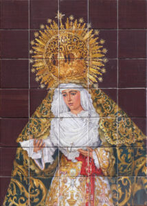 Inicio Obras 05528. Retablo cerámico. Virgen de la Esperanza de Triana. Sevilla. 05528. Retablo cerámico. Virgen de la Esperanza de Triana. Sevilla. Código05528Tipo de obraPanel de azulejosRetablo cerámicoFunciónDevocionalTipo de panelPictóricoAutorRuiz Hurtado, ManuelTallerRuiz Gil, CerámicaFuente de autoríaFirmadoCronología2011Fuente de la cronologíaConocimiento directoDimensiones0,75 m. x 1,05 m. (aprox.)Pieza datadaSi Lugar exacto donde se encuentraFachada de domicilio particular. Calle Zaragoza esquina con Carlos CañalPoblaciónSevillaProvinciaSevillaPaísEspañaSituada en elExteriorLugar de producciónSevillaZona de producciónAndalucíaTécnica decorativaAzulejo plano pintadoTema de decoración o temáticaReligiosa - pasionistaPersonajes representadosVirgen MaríaAdvocacionesEsperanzaEsperanza de Triana Más datosEl panel tiene la pieza de la esquina inferior derecha mal colocado. En la galería ofrecemos la versión correcta. Autor de las fotografíasAntonio Entrena Aznarte. Marzo 2024