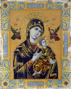 Inicio Obras 06157. Retablo cerámico. Virgen del Perpetuo Socorro. Fundación Gota de Leche. Sevilla. 06157. Retablo cerámico. Virgen del Perpetuo Socorro. Fundación Gota de Leche. Sevilla. Código06157Tipo de obraRetablo cerámicoFunciónDevocionalTipo de panelPictóricoAutorDesconocidoTallerManuel Rodríguez Pérez de Tudela. FábricaFuente de autoríaFirmadoCronologíaDécada de 1920Fuente de la cronologíaEstimaciónDimensiones0,80 m. x 1,00 m. (aprox.)Pieza datadaNo Lugar exacto donde se encuentraZaguán de entrada al edificio de la Fundación Gota de Leche. Calle Manuel Rojas Marcos, 6PoblaciónSevillaProvinciaSevillaPaísEspañaSituada en elInteriorLugar de producciónSevillaZona de producciónAndalucíaTécnica decorativaMixta de cuerda seca y azulejo plano pintadoTema de decoración o temáticaReligiosa - letíficaEscenaVirgen con el NiñoPersonajes representadosÁngelJesús de Nazaret NiñoVirgen MaríaAdvocacionesPerpetuo Socorro Autor de las fotografíasAlfonso García García. Junio 2015