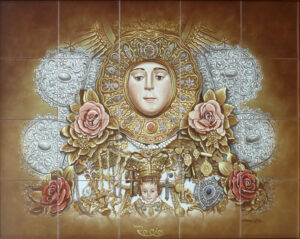 Inicio Obras 06729. Retablo cerámico. Virgen del Rocío. Bonares. Huelva. 06729. Retablo cerámico. Virgen del Rocío. Bonares. Huelva. Código06729Tipo de obraRetablo cerámicoFunciónDevocionalTipo de panelPictóricoAutorDel Toro Ponce, CarmeloFuente de autoríaFirmadoCronología2021Fuente de la cronologíaComunicación del autorDimensiones0,75 m. x 0,60 m. (aprox.)Pieza datadaSi Lugar exacto donde se encuentraPropiedad particularPoblaciónBonaresProvinciaHuelvaPaísEspañaLugar de producciónVillalba del AlcorZona de producciónAndalucíaTécnica decorativaAzulejo plano pintadoTema de decoración o temáticaReligiosa - letíficaEscenaVirgen con el NiñoPersonajes representadosJesús de Nazaret NiñoVirgen MaríaAdvocacionesRocíoRocío (Almonte) Autor de las fotografíasManuel Pablo Rodríguez Rodríguez. Septiembre 2025