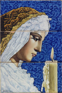 Inicio Obras 06792. Retablo cerámico. Virgen de los Dolores en su Soledad. Albaida del Aljarafe. Sevilla. 06792. Retablo cerámico. Virgen de los Dolores en su Soledad. Albaida del Aljarafe. Sevilla. Código06792Tipo de obraRetablo cerámicoFunciónDevocionalTipo de panelPictóricoAutorPeláez Jaén, FacundoTallerCerámica Santa Ana. FábricaFuente de autoríaAutor: por operación comparativa. Taller: firmadoCronologíaDécada de 1950Fuente de la cronologíaEstimaciónDimensiones0,28 m. x 0,42 m. (aprox.)Pieza datadaNo Lugar exacto donde se encuentraFachada de domicilio particular. Avenida de la Constitución, 27PoblaciónAlbaida del AljarafeProvinciaSevillaPaísEspañaSituada en elExteriorLugar de producciónSevillaZona de producciónAndalucíaTécnica decorativaAzulejo plano pintadoTema de decoración o temáticaReligiosa - pasionistaPersonajes representadosVirgen MaríaAdvocacionesDolores en su Soledad Autor de las fotografíasManuel Pablo Rodríguez Rodríguez. Noviembre 2015