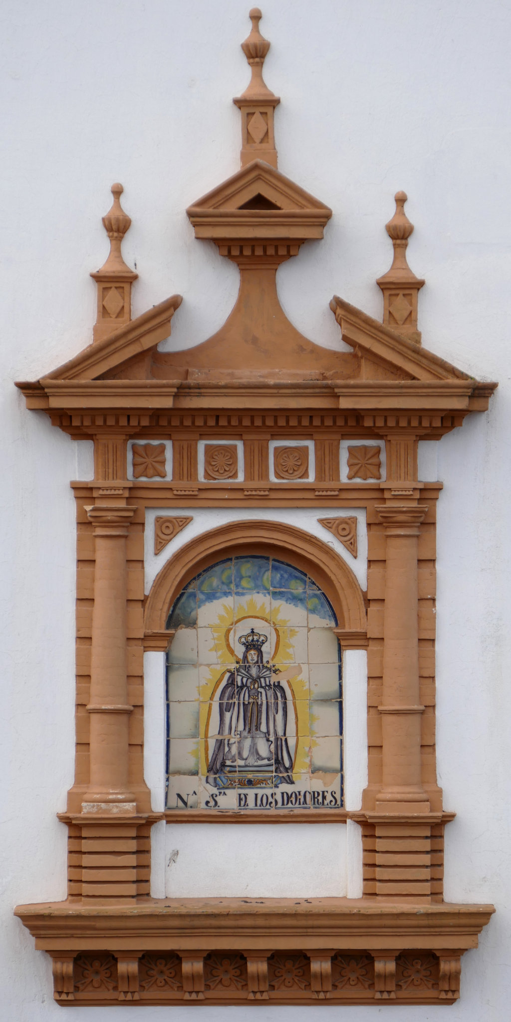 Inicio Obras 07304. Retablo cerámico. Virgen de los Dolores. Iglesia de Santa María la Mayor. Pilas. Sevilla. 07304. Retablo cerámico. Virgen de los Dolores. Iglesia de Santa María la Mayor. Pilas. Sevilla. Código07304Tipo de obraRetablo cerámicoFunciónDevocionalTipo de panelPictóricoAutorDesconocidoCronologíaDécada de 1830Fuente de la cronologíaVer bibliografíaDimensiones0,75 m. x 1,05 m. (aprox.)Pieza datadaNo Lugar exacto donde se encuentraTorre de la Iglesia Parroquial de Santa María la Mayor. Calle Santa María la MayorPoblaciónPilasProvinciaSevillaPaísEspañaSituada en elExteriorLugar de producciónSevillaZona de producciónAndalucíaTécnica decorativaAzulejo plano pintadoTema de decoración o temáticaReligiosa - pasionistaPersonajes representadosVirgen MaríaAdvocacionesDoloresEstado de conservaciónPérdidas de vidriado BibliografíaSilva Fernández, Juan Antonio. (2024). El retablo dedicado a Nuestra Señora de los Dolores, en la torre de la Parroquia de Pilas (VER) ConjuntoPilas. Iglesia de Santa María la Mayor Autor de las fotografíasManuel Pablo Rodríguez Rodríguez. Febrero 2026