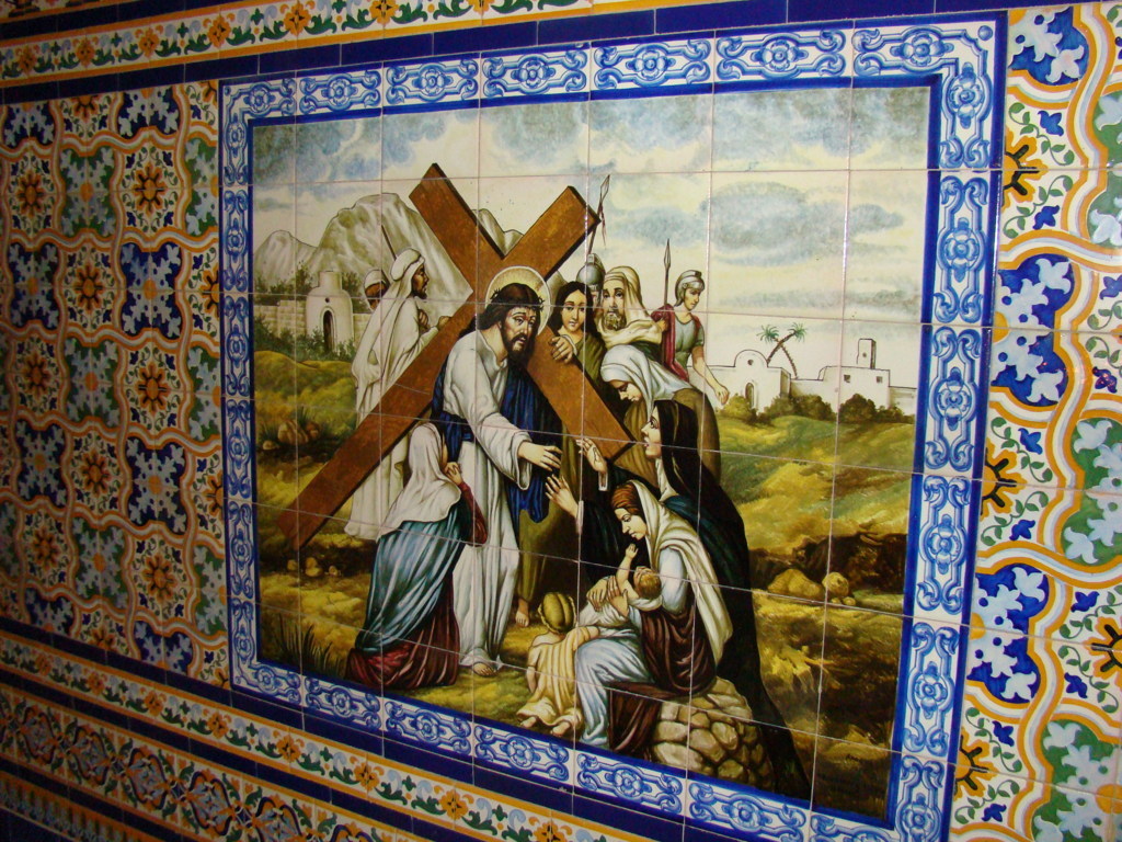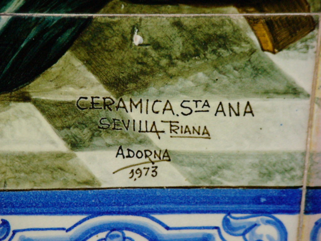 Inicio Obras 07930. Zócalo con escenas pasionistas. Iglesia de Santa María la Mayor. Pilas. Sevilla. 07930. Zócalo con escenas pasionistas. Iglesia de Santa María la Mayor. Pilas. Sevilla. Código07930Tipo de obraZócaloFunciónArquitectónicaDevocionalTipo de panelPictóricoAutorMartínez Adorna, AntonioTallerCerámica Santa Ana. FábricaFuente de autoríaFirmadoCronología1973Fuente de la cronologíaDatado en la obraDimensiones1,05 m. x 0,90 m. (aprox.) cada escenaPieza datadaSi Lugar exacto donde se encuentraZócalo de la capilla de Nuestro Padre Jesús Cautivo. Iglesia de Santa María la MayorPoblaciónPilasProvinciaSevillaPaísEspañaSituada en elInteriorLugar de producciónSevillaZona de producciónAndalucíaTécnica decorativaAzulejo plano pintadoTema de decoración o temáticaReligiosa - pasionistaEscenaEncuentro de Jesús con las hijas de JerusalénSentenciaPersonajes representadosJesús de NazaretPoncio PilatoSanedritaSoldado romano Autor de las fotografíasAlfonso García García. Noviembre 2009