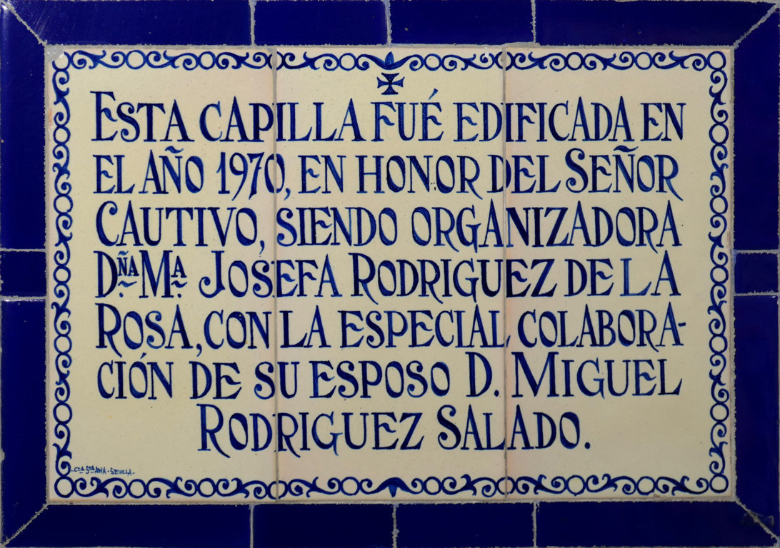 Inicio Obras 07930. Zócalo con escenas pasionistas. Iglesia de Santa María la Mayor. Pilas. Sevilla. 07930. Zócalo con escenas pasionistas. Iglesia de Santa María la Mayor. Pilas. Sevilla. Código07930Tipo de obraZócaloFunciónArquitectónicaDevocionalTipo de panelPictóricoAutorMartínez Adorna, AntonioTallerCerámica Santa Ana. FábricaFuente de autoríaFirmadoCronología1973Fuente de la cronologíaDatado en la obraDimensiones1,05 m. x 0,90 m. (aprox.) cada escenaPieza datadaSi Lugar exacto donde se encuentraZócalo de la capilla de Nuestro Padre Jesús Cautivo. Iglesia de Santa María la MayorPoblaciónPilasProvinciaSevillaPaísEspañaSituada en elInteriorLugar de producciónSevillaZona de producciónAndalucíaTécnica decorativaAzulejo plano pintadoTema de decoración o temáticaReligiosa - pasionistaEscenaEncuentro de Jesús con las hijas de JerusalénSentenciaPersonajes representadosJesús de NazaretPoncio PilatoSanedritaSoldado romano ConjuntoPilas. Iglesia de Santa María la Mayor Autor de las fotografíasAlfonso García García. Noviembre 2009