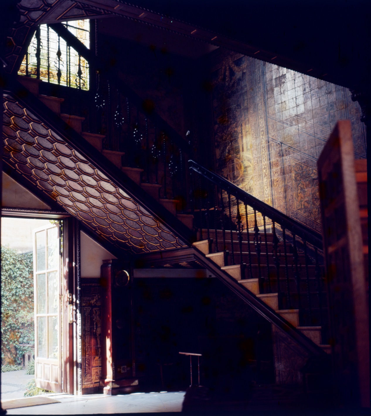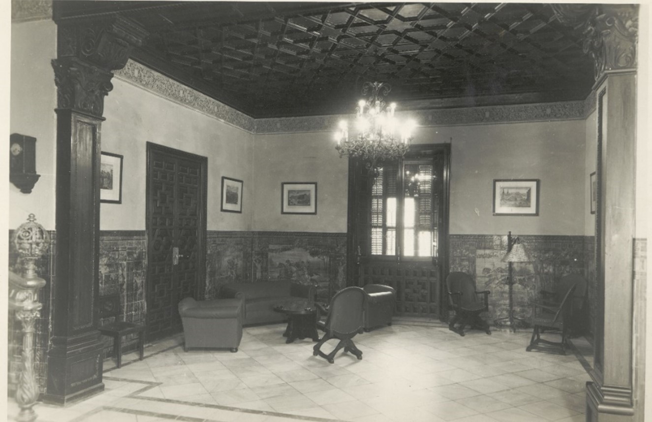 En unas antiguas fotografías se puede observar cómo los arrimaderos del patio central estaban recubiertos de azulejos, todos ellos realizados en la fábrica de José Tova Villalva y pintados por un joven ceramista (apenas 18 años), Enrique Orce Mármol.