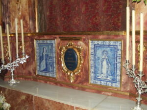 Inicio Obras 08449. Retablo cerámico. Virgen Milagrosa. La Roda de Andalucía. Sevilla. 08449. Retablo cerámico. Virgen Milagrosa. La Roda de Andalucía. Sevilla. Código08449Tipo de obraRetablo cerámicoFunciónDevocionalTipo de panelPictóricoAutorDesconocidoTallerMensaque Rodríguez y Compañía. FábricaFuente de autoríaPor operación comparativaCronologíaDécada de 1940Fuente de la cronologíaEstimaciónDimensiones0,38 m. x 0,52 m. (aprox.)Pieza datadaNo Lugar exacto donde se encuentraAltar de Jesús Nazareno. Iglesia Parroquial de Santa Ana. Calle CervantesPoblaciónLa Roda de AndalucíaProvinciaSevillaPaísEspañaSituada en elInteriorLugar de producciónSevillaZona de producciónAndalucíaTécnica decorativaAzulejo plano pintadoTema de decoración o temáticaReligiosa - letíficaPersonajes representadosVirgen MaríaAdvocacionesMilagrosa Autor de las fotografíasManuel Pablo Rodríguez Rodríguez. Abril 2011