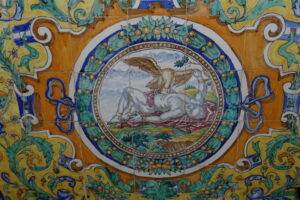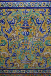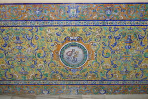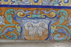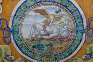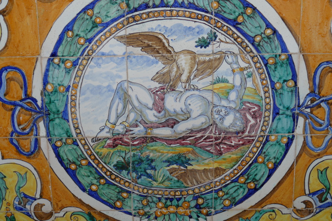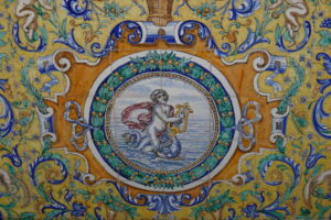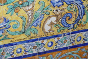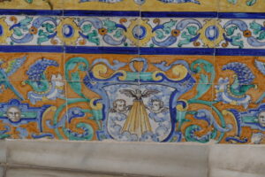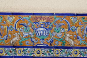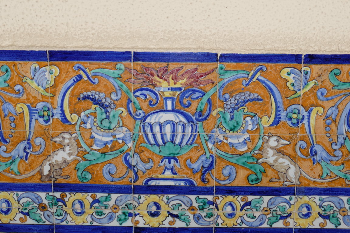 Inicio Obras 08458. Zócalo. Calle San Isidoro. Sevilla. 08458. Zócalo. Calle San Isidoro. Sevilla. Código08458Tipo de obraZócaloFunciónArquitectónicaTipo de panelPictóricoAutorDesconocidoTallerMensaque Rodríguez y Compañía. FábricaFuente de autoríaFirmadoCronologíaDécada de 1970Fuente de la cronologíaEstimaciónDimensiones1,65 m. de altura (aprox.)Pieza datadaNo Lugar exacto donde se encuentraZaguán del San Isidoro Hostel. Calle San Isidoro, 30PoblaciónSevillaProvinciaSevillaPaísEspañaSituada en elInteriorLugar de producciónSevillaZona de producciónAndalucíaTécnica decorativaAzulejo plano pintadoTema de decoración o temáticaMitológicaMotivos renacentistasReligiosaPersonajes representadosÁngelÁnimasArión de LesbosEspíritu SantoPrometeoEstado de conservaciónPiezas rotas Autor de las fotografíasManuel Pablo Rodríguez Rodríguez. Agosto 2025