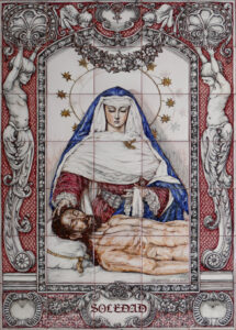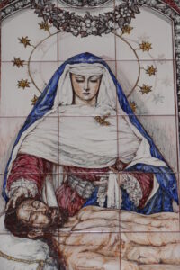 Inicio Obras 08459. Retablo cerámico. Cristo de los Remedios y Virgen de la Soledad. Casa de la Hermandad de Santiago. Castilleja de la Cuesta. Sevilla. 08459. Retablo cerámico. Cristo de los Remedios y Virgen de la Soledad. Casa de la Hermandad de Santiago. Castilleja de la Cuesta. Sevilla. Código08459Tipo de obraRetablo cerámicoFunciónDevocionalTipo de panelPictóricoAutorOrdóñez Escudero, RosarioFuente de autoríaFirmadoCronología2008Fuente de la cronologíaDatado en la obraDimensiones1,00 m. x 1,40 m. (aprox.)Pieza datadaSi Lugar exacto donde se encuentraPatio de la Casa de la Hermandad de Santiago. Calle Enmedio, 31PoblaciónCastilleja de la CuestaProvinciaSevillaPaísEspañaSituada en elInteriorLugar de producciónSevillaZona de producciónAndalucíaTécnica decorativaAzulejo plano pintadoTema de decoración o temáticaReligiosa - pasionistaEscenaJesús descendido de la cruzPersonajes representadosJesús de NazaretVirgen MaríaAdvocacionesRemediosSoledadSoledad (Castilleja de la Cuesta) Autor de las fotografíasManuel Pablo Rodríguez Rodríguez. Agosto 2025