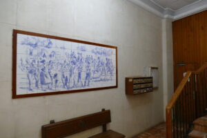 Inicio Obras 08469. Panel de azulejos con escena de la romería del Rocío. Sevilla. 08469. Panel de azulejos con escena de la romería del Rocío. Sevilla. Código08469Tipo de obraPanel de azulejosFunciónOrnamentalTipo de panelPictóricoAutorRodríguez-Valdés y Paredes, Juan. (Juan Valdés)Fuente de autoríaFirmadoCronología1979Fuente de la cronologíaDatado en la obraDimensiones2,10 m. x 0,90 m. (aprox.)Pieza datadaSi Lugar exacto donde se encuentraZaguán de domicilio particular. Calle Rafael González Serna, 2PoblaciónSevillaProvinciaSevillaPaísEspañaSituada en elInteriorLugar de producciónSevillaZona de producciónAndalucíaTécnica decorativaAzulejo plano pintadoTema de decoración o temáticaCostumbristaRocieraEstado de conservaciónPiezas rotas Autor de las fotografíasManuel Pablo Rodríguez Rodríguez. Agosto 2025