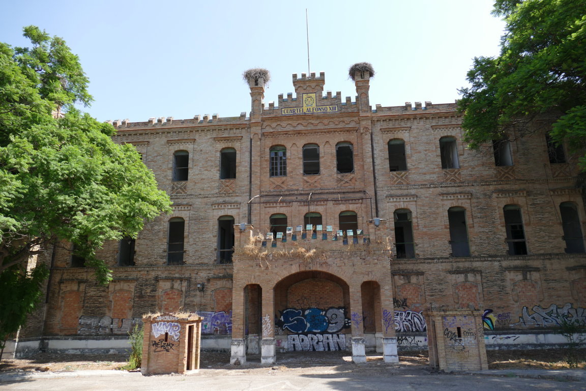 Inicio Obras 08474. Rótulo del antiguo Cuartel Alfonso XIII. Avenida de Jerez. Sevilla. 08474. Rótulo del antiguo Cuartel Alfonso XIII. Avenida de Jerez. Sevilla. Código08474Tipo de obraRótuloFunciónInformaciónTipo de panelPictóricoAutorDesconocidoTallerMensaque Rodríguez y Compañía. FábricaFuente de autoríaFirmadoCronologíaDécada de 1920Fuente de la cronologíaFecha de construcción e inauguración del cuartelDimensiones2,90 m. x 1,05 m. (aprox.)Pieza datadaNo Lugar exacto donde se encuentraFachada del antiguo Cuartel Alfonso XIII. Avenida de JerezPoblaciónSevillaProvinciaSevillaPaísEspañaSituada en elExteriorLugar de producciónSevillaZona de producciónAndalucíaTécnica decorativaMixta de cuerda seca y azulejo plano pintadoTema de decoración o temáticaEpigráficaHeráldicaEstado de conservaciónFachada en mal estadoNumerosas pérdidas de vidriado Autor de las fotografíasManuel Pablo Rodríguez Rodríguez. Agosto 2025