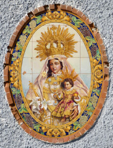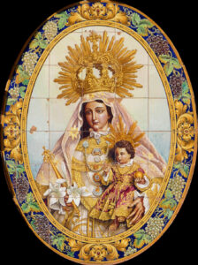 Inicio Obras 08478. Retablo cerámico. Virgen de las Mercedes. Mazagón. Palos de la Frontera. Huelva. 08478. Retablo cerámico. Virgen de las Mercedes. Mazagón. Palos de la Frontera. Huelva. Código08478Tipo de obraRetablo cerámicoFunciónDevocionalTipo de panelPictóricoAutorChaves Tejada, AlfonsoTallerRamos Rejano, FábricaFuente de autoríaFirmadoCronología1960. ca.Fuente de la cronologíaEstimaciónDimensiones0,90 m. x 1,20 m. (aprox.)Pieza datadaNo Lugar exacto donde se encuentraFachada de domicilio particular (hacia la playa). Avenida de los Conquistadores, 100PoblaciónMazagónPalos de la FronteraProvinciaHuelvaPaísEspañaSituada en elExteriorLugar de producciónSevillaZona de producciónAndalucíaTécnica decorativaAzulejo plano pintadoTema de decoración o temáticaReligiosa - letíficaEscenaVirgen con el NiñoPersonajes representadosJesús de Nazaret NiñoVirgen MaríaAdvocacionesMercedesMercedes (Bollullos Par del Condado)Estado de conservaciónPérdidas de vidriado Autor de las fotografíasManuel Pablo Rodríguez Rodríguez. Agosto 2025
