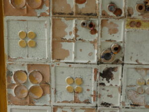 Inicio Obras 08479. Panel decorativo y de numeración de casa. Calle Marqués de Nervión. Sevilla. 08479. Panel decorativo y de numeración de casa. Calle Marqués de Nervión. Sevilla. Código08479Tipo de obraPanel de piezas de relieveTerracota estanníferaFunciónInformación urbanaOrnamentalAutorGarcía Ortiz, EmilioFuente de autoríaFirmadoCronología1978Fuente de la cronologíaEstimación en base a la fecha de construcción de los edificiosPieza datadaNo Lugar exacto donde se encuentraCalle Marqués de Nervión, 26-28PoblaciónSevillaProvinciaSevillaPaísEspañaSituada en elExteriorLugar de producciónSevillaZona de producciónAndalucíaTécnica conformación empleadaTerracota moldeadaTécnica decorativaVidriadoTema de decoración o temáticaGeométricaEstado de conservaciónDeficiente. Riesgo alto de destrucción Autor de las fotografíasManuel Pablo Rodríguez Rodríguez. Mayo 2017
