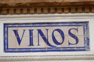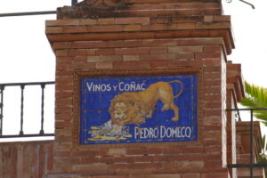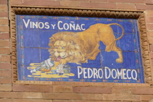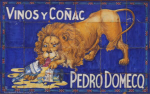 Panel de azulejos con publicidad de los vinos y coñac de las Bodegas Pedro Domecq.