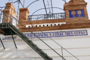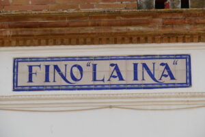 Panel de azulejos de "Fino la Ina" en la fachada del Pabellón