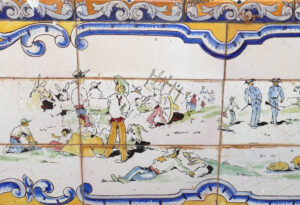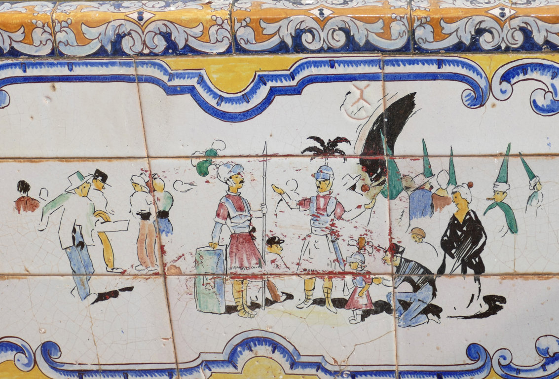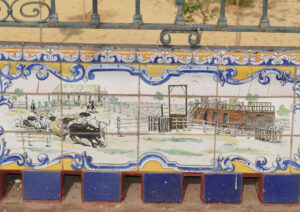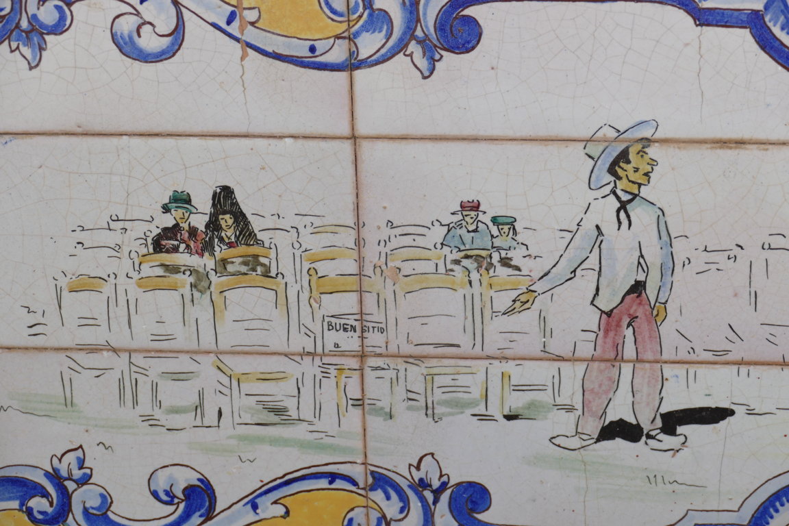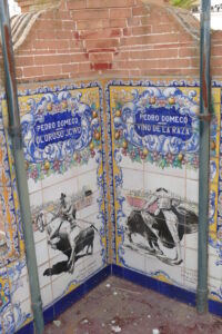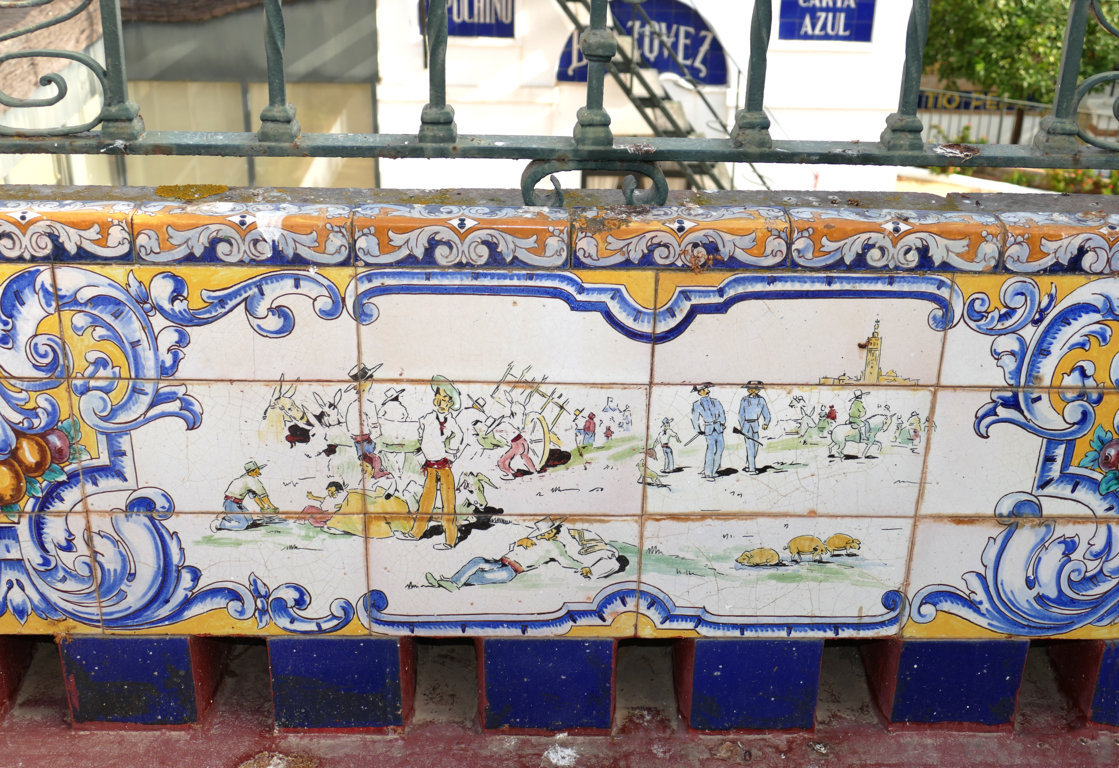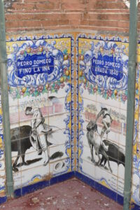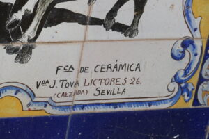 Inicio Obras 08512. Paneles publicitarios, taurinos y costumbristas. Terraza. Pabellón Bodegas Pedro Domecq. Real Venta de Antequera. Sevilla. 08512. Paneles publicitarios, taurinos y costumbristas. Terraza. Pabellón Bodegas Pedro Domecq. Real Venta de Antequera. Sevilla. Código08512Tipo de obraPanel de azulejosFunciónPublicitariaTipo de panelPictóricoAutorDesconocidoTallerTova Villalva, José (Viuda de). FábricaFuente de autoríaFirmadoCronología1929. ca.Fuente de la cronologíaEstimaciónPieza datadaNo Lugar exacto donde se encuentraPabellón Bodegas Pedro Domecq. Real Venta de Antequera. Avenida de Jerez, 54PoblaciónSevillaProvinciaSevillaPaísEspañaSituada en elInteriorLugar de producciónSevillaZona de producciónAndalucíaTécnica decorativaAzulejo plano pintadoTema de decoración o temáticaCostumbristaFiestas popularesFiestas populares de SevillaPaisaje urbanoPublicitariaRocieraTaurina ConjuntoSevilla. Real Venta de Antequera Vista general del Pabellón, planta baja y terraza superior Autor de las fotografíasEquipo de la Asociación Pisano. Agosto 2025