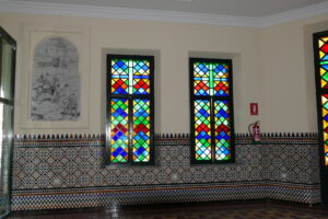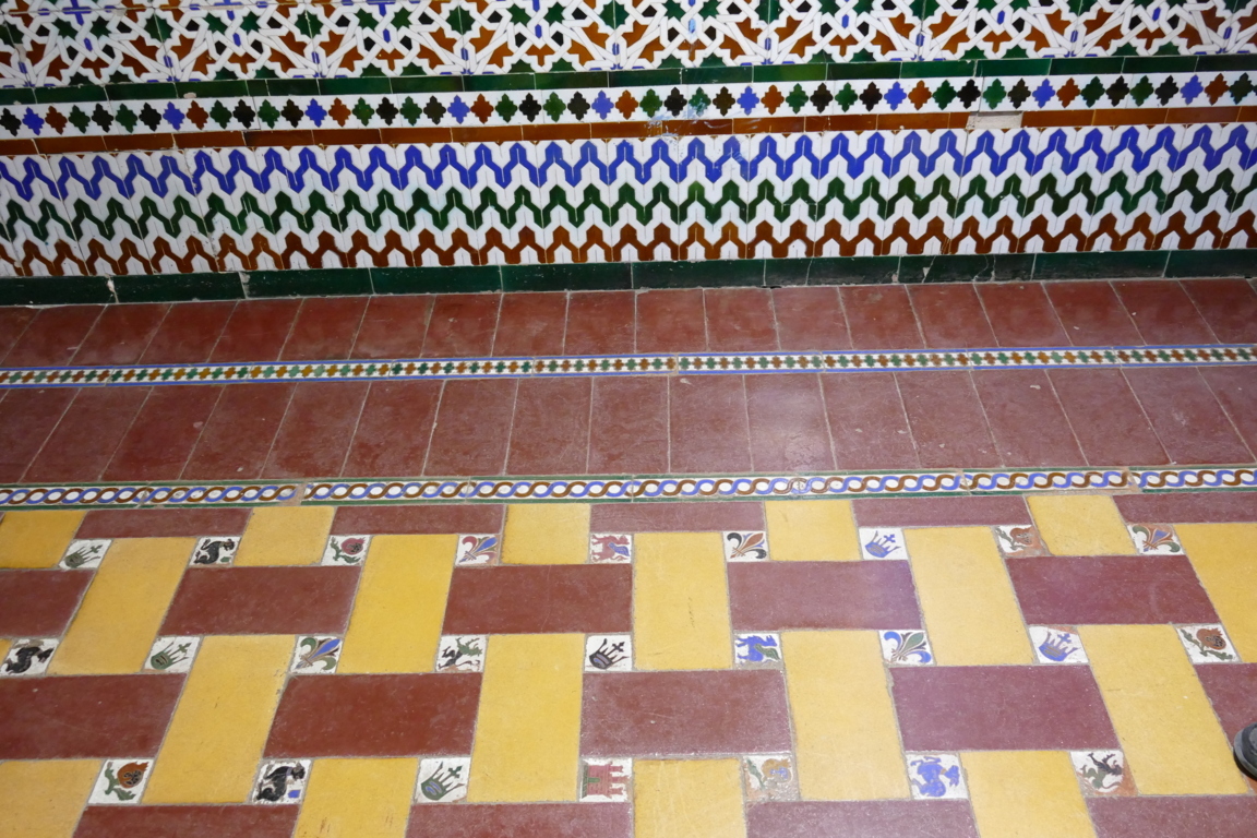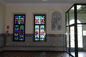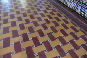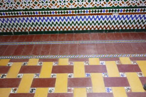 Inicio Obras 08516. Zócalo y pavimento. Salón Antequera. Real Venta de Antequera. Sevilla. 08516. Zócalo y pavimento. Salón Antequera. Real Venta de Antequera. Sevilla. Código08516Tipo de obraPavimentoZócaloFunciónArquitectónicaTipo de panelDe patrónAutorDesconocidoCronología1925. ca.Fuente de la cronologíaEstimaciónPieza datadaNo Lugar exacto donde se encuentraSalón Antequera. Real Venta de Antequera. Avenida de Jerez, 54PoblaciónSevillaProvinciaSevillaPaísEspañaSituada en elInteriorLugar de producciónSevillaZona de producciónAndalucíaTécnica decorativaAristaTema de decoración o temáticaGeométricaLacería ConjuntoSevilla. Real Venta de Antequera Autor de las fotografíasEquipo de la Asociación Pisano. Agosto 2025