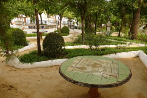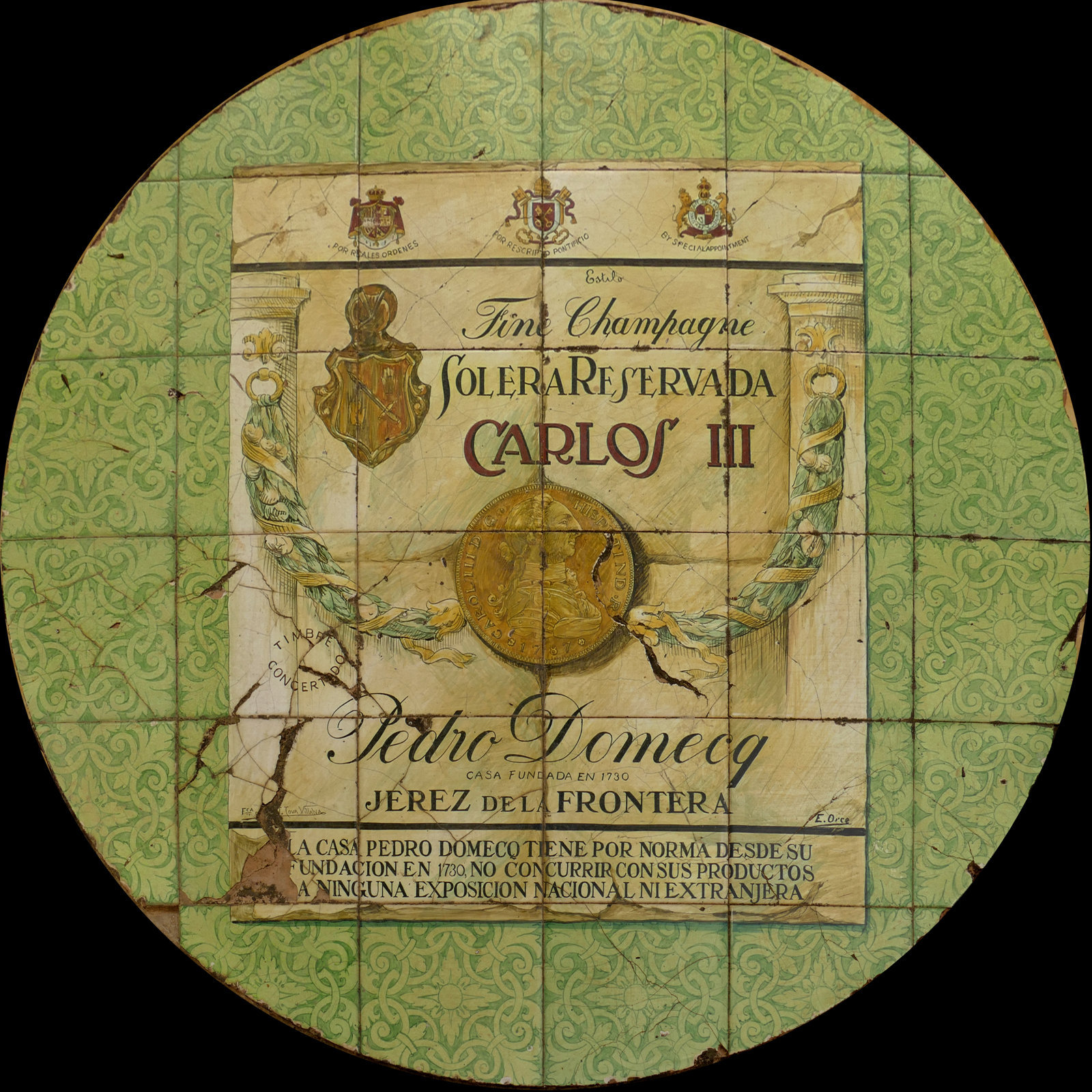 Inicio Obras 08521. Mesa con panel publicitario de Pedro Domecq. Real Venta de Antequera. Sevilla. 08521. Mesa con panel publicitario de Pedro Domecq. Real Venta de Antequera. Sevilla. Código08521Tipo de obraMesaPanel de azulejosFunciónPublicitariaTipo de panelPictóricoAutorOrce Mármol, EnriqueTallerTova Villalva, José (Viuda de). FábricaFuente de autoríaFirmadoCronología1925. ca.Fuente de la cronologíaEstimaciónDimensiones0,90 m. de diámetro. (aprox.)Pieza datadaNo Lugar exacto donde se encuentraReal Venta de Antequera. Avenida de Jerez, 54PoblaciónSevillaProvinciaSevillaPaísEspañaSituada en elInteriorLugar de producciónSevillaZona de producciónAndalucíaTécnica decorativaAzulejo plano pintadoTema de decoración o temáticaPublicitariaEstado de conservaciónPiezas rotas ConjuntoSevilla. Real Venta de Antequera Autor de las fotografíasEquipo de la Asociación Pisano. Agosto 2025
