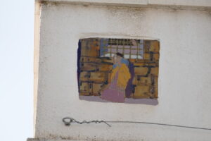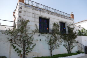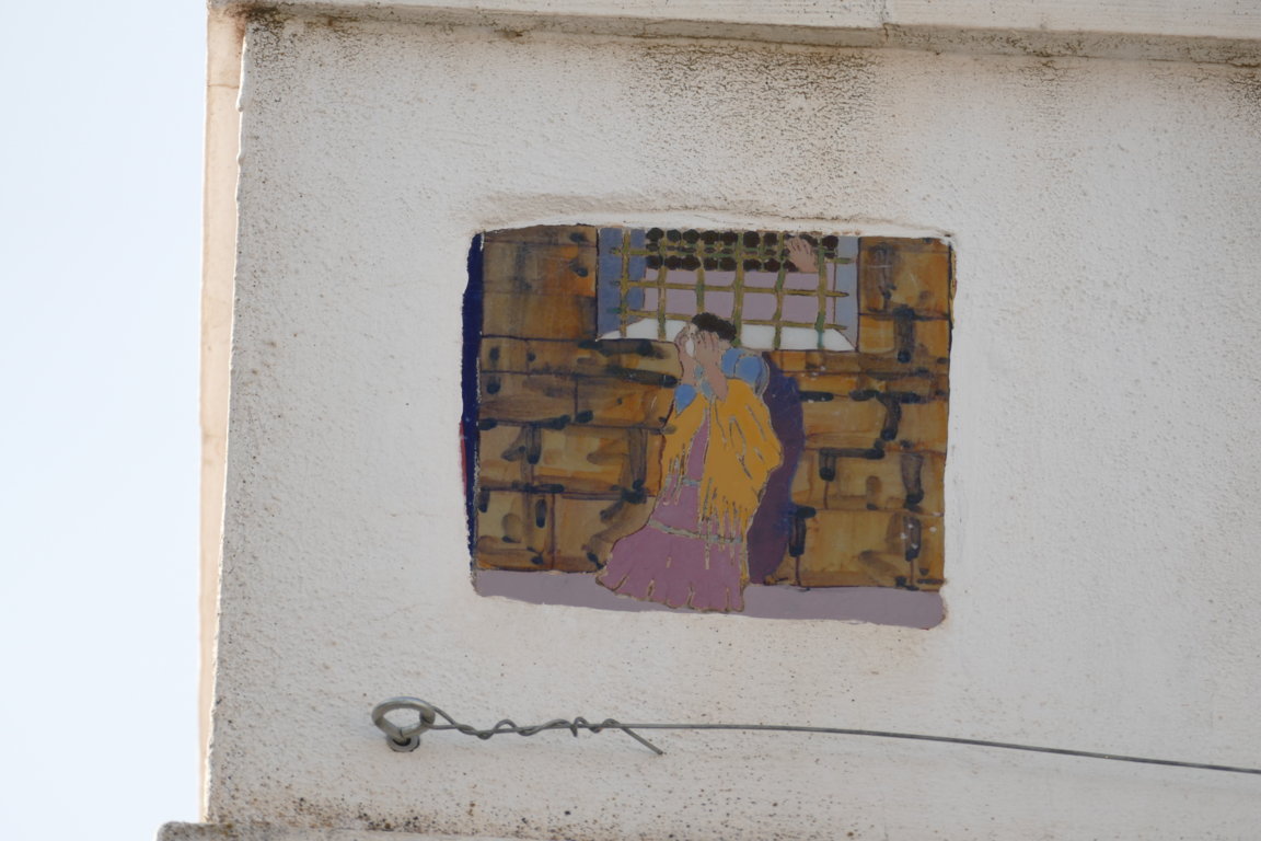 Fachada trasera del bar donde se conservan seis azulejos de esta serie en los extremos de la misma.
