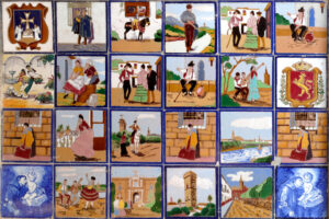 En los extremos izquierdo y derecho de la fachada trasera del bar de la plaza de toros, hacia los corrales, se conservan seis azulejos de esta serie, repetidos por parejas. Hay dos modelos únicamente que adjuntamos en la galería.