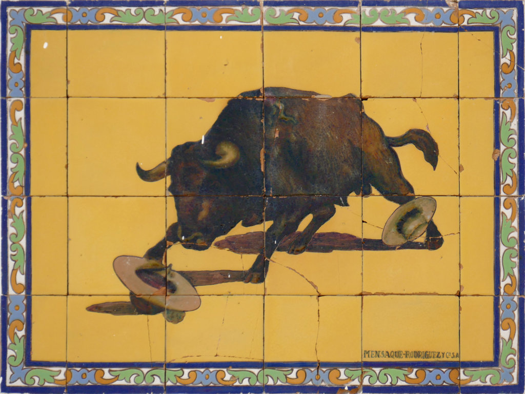 Inicio Obras 08535. Rotulación y panel con toro. Museo taurino. Real Venta de Antequera. Sevilla. 08535. Rotulación y panel con toro. Museo taurino. Real Venta de Antequera. Sevilla. Código08535Tipo de obraPanel de azulejosRótuloFunciónInformaciónTipo de panelPictóricoAutorDesconocidoTallerMensaque Rodríguez y Compañía. FábricaFuente de autoríaFirmadoCronología1930. ca.Fuente de la cronologíaEstimaciónPieza datadaNo Lugar exacto donde se encuentraReal Venta de Antequera. Avenida de Jerez, 54PoblaciónSevillaProvinciaSevillaPaísEspañaSituada en elInteriorLugar de producciónSevillaZona de producciónAndalucíaTécnica decorativaMixta de cuerda seca y azulejo plano pintadoTema de decoración o temáticaTaurinaEstado de conservaciónPiezas rotas ConjuntoSevilla. Real Venta de Antequera Autor de las fotografíasEquipo de la Asociación Pisano. Agosto 2025