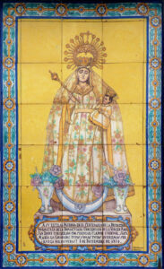 Inicio Obras 08564. Retablo cerámico. Santa María la Coronada. San Roque. Cádiz. 08564. Retablo cerámico. Santa María la Coronada. San Roque. Cádiz. Código08564Tipo de obraRetablo cerámicoFunciónConmemorativaDevocionalTipo de panelPictóricoAutorMuñoz Ruiz, AntonioTallerMontalván. FábricaFuente de autoríaFirmadoCronología1954Fuente de la cronologíaDatado en la obraDimensiones0,80 m. x 1,30 m. (aprox.)Pieza datadaSi Lugar exacto donde se encuentraFachada de la Parroquia de Santa María la Coronada. Plaza de la IglesiaPoblaciónSan RoqueProvinciaCádizPaísEspañaSituada en elExteriorLugar de producciónSevillaZona de producciónAndalucíaTécnica decorativaAzulejo plano pintadoTema de decoración o temáticaReligiosa - letíficaEscenaVirgen con el NiñoPersonajes representadosJesús de Nazaret NiñoVirgen MaríaAdvocacionesCoronadaEstado de conservaciónAlguna zona en mal estado Autor de las fotografíasManuel Quiles Pastor. Noviembre 2014