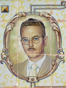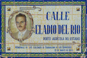 Inicio Obras 08585. Rótulo de la calle Eladio del Río. Guadalema de los Quintero. Utrera. Sevilla. 08585. Rótulo de la calle Eladio del Río. Guadalema de los Quintero. Utrera. Sevilla. Código08585Tipo de obraPanel de azulejosRótulo de calleFunciónConmemorativaInformación urbanaTipo de panelPictóricoAutorKiernam Flores, AntonioTallerCerámica Santa Ana. FábricaFuente de autoríaFirmadoCronología1965Fuente de la cronologíaDatado en la obraDimensiones0,90 m. x 0,60 m. (aprox.)Pieza datadaSi Lugar exacto donde se encuentraFachada de domicilio particular. Calle Eladio del Río esquina con plaza de los Quintero. Guadalema de los QuinteroPoblaciónGuadalema de los QuinteroUtreraProvinciaSevillaPaísEspañaSituada en elExteriorLugar de producciónSevillaZona de producciónAndalucíaTécnica decorativaAzulejo plano pintadoTema de decoración o temáticaEpigráficaRetratoEstado de conservaciónPiezas rotas Autor de las fotografíasManuel Pablo Rodríguez Rodríguez. Octubre 2025