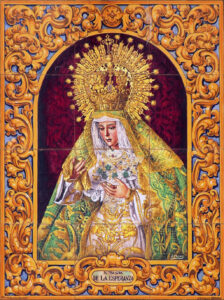 Inicio Obras 08586. Retablo cerámico. Virgen de la Esperanza Macarena. Gines. Sevilla. 08586. Retablo cerámico. Virgen de la Esperanza Macarena. Gines. Sevilla. Código08586Tipo de obraRetablo cerámicoFunciónDevocionalTipo de panelPictóricoAutorChaves Tejada, AlfonsoTallerRamos Rejano, FábricaFuente de autoríaFirmadoCronologíaDécada de 1940Fuente de la cronologíaEstimaciónDimensiones0,60 m. x 0,80 m. (aprox.)Pieza datadaNo Lugar exacto donde se encuentraFachada de restaurante. Carretera Gines-Espartinas, junto a rotonda de OchoaPoblaciónGinesProvinciaSevillaPaísEspañaSituada en elExteriorLugar de producciónSevillaZona de producciónAndalucíaTécnica decorativaAzulejo plano pintadoTema de decoración o temáticaReligiosa - pasionistaPersonajes representadosVirgen MaríaAdvocacionesEsperanzaEsperanza Macarena Autor de las fotografíasManuel Pablo Rodríguez Rodríguez. Mayo 2013