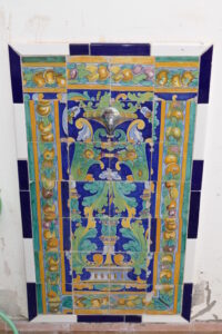 En el acceso a la propiedad se encuentra un fragmenta de piezas recompuesto proveniente de este zócalo. Lo adjuntamos en la galería.