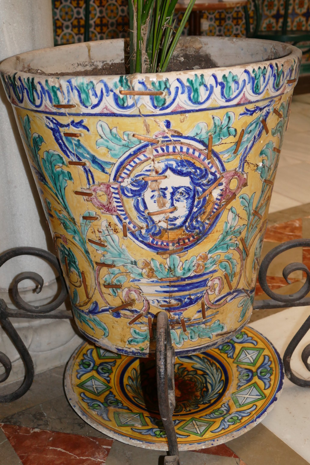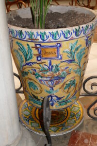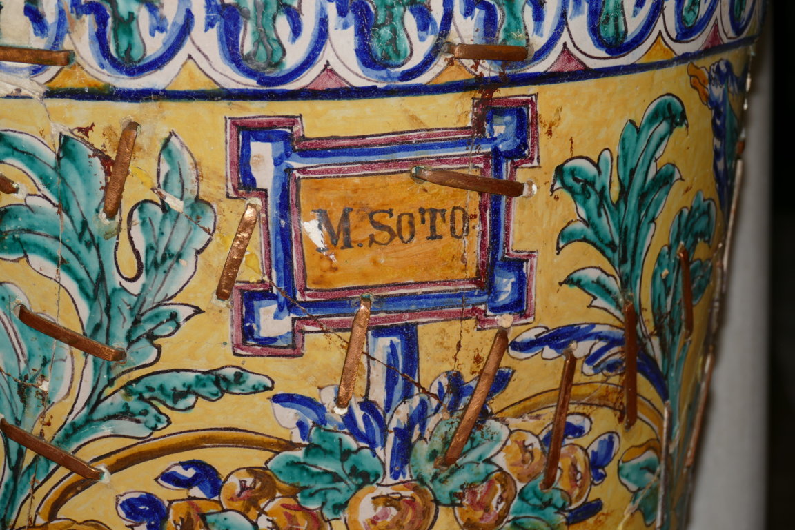 Inicio Obras 08596. Macetero. Casa en calle San Pedro Mártir. Sevilla. 08596. Macetero. Casa en calle San Pedro Mártir. Sevilla. Código08596Tipo de obraLoza estanníferaMaceteroFunciónOrnamentalAutorDesconocidoTallerSoto y Tello, Manuel, fábricaFuente de autoríaFirmadoCronologíaFinales del siglo XIXFuente de la cronologíaEstimaciónPieza datadaNo Lugar exacto donde se encuentraPropiedad particular. Calle San Pedro MártirPoblaciónSevillaProvinciaSevillaPaísEspañaSituada en elInteriorLugar de producciónSevillaZona de producciónAndalucíaTécnica decorativaLoza pintadaEstado de conservaciónDeficiente. Con roturas ConjuntoSevilla. Casa en calle San Pedro Mártir Autor de las fotografíasManuel Pablo Rodríguez Rodríguez. Septiembre 2025