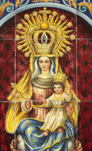 Inicio Obras 08620. Retablo cerámico. Virgen de Loreto. Villanueva del Ariscal. Sevilla. 08620. Retablo cerámico. Virgen de Loreto. Villanueva del Ariscal. Sevilla. Código08620Tipo de obraRetablo cerámicoFunciónDevocionalTipo de panelPictóricoAutorChaves Tejada, AlfonsoTallerRamos Rejano, FábricaFuente de autoríaAutor: por operación comparativa. Taller: firmadoCronologíaDécada de 1940Fuente de la cronologíaEstimaciónDimensiones0,45 m. x 0,60 m. (aprox.)Pieza datadaNo Lugar exacto donde se encuentraZaguán de domicilio particular. Calle Santísimo Cristo de la Vera Cruz, 28PoblaciónVillanueva del AriscalProvinciaSevillaPaísEspañaSituada en elInteriorLugar de producciónSevillaZona de producciónAndalucíaTécnica decorativaAzulejo plano pintadoTema de decoración o temáticaReligiosa - letíficaEscenaVirgen con el NiñoPersonajes representadosÁngelJesús de Nazaret NiñoVirgen MaríaAdvocacionesLoreto Más datosEl retablo tiene las dos piezas de las esquinas superiores mal colocadas. Autor de las fotografíasManuel Pablo Rodríguez Rodríguez. Febrero 2013