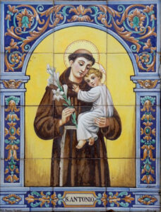 Inicio Obras 08621. Retablo cerámico. San Antonio de Padua. Villanueva del Ariscal. Sevilla. 08621. Retablo cerámico. San Antonio de Padua. Villanueva del Ariscal. Sevilla. Código08621Tipo de obraRetablo cerámicoFunciónDevocionalTipo de panelPictóricoAutorChaves Tejada, AlfonsoTallerRamos Rejano, FábricaFuente de autoríaFirmadoCronologíaDécada de 1940Fuente de la cronologíaEstimaciónDimensiones0,45 m. x 0,60 m. (aprox.)Pieza datadaNo Lugar exacto donde se encuentraPatio de domicilio particular. Calle Santísimo Cristo de la Vera Cruz, 28PoblaciónVillanueva del AriscalProvinciaSevillaPaísEspañaSituada en elInteriorLugar de producciónSevillaZona de producciónAndalucíaTécnica decorativaAzulejo plano pintadoTema de decoración o temáticaReligiosa - hagiográficaPersonajes representadosAntonio de Padua, SanJesús de Nazaret Niño Autor de las fotografíasManuel Pablo Rodríguez Rodríguez. Febrero 2013