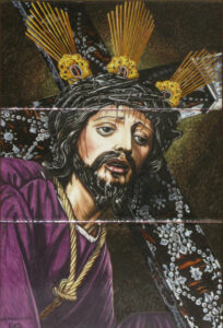 Leyenda al dorso: «Fue encargado en marzo de 1999 por la Junta Auxiliar y Grupo Joven de la Hermandad, siendo su presidente Enrique Ordoñez Fernández de Sevilla».