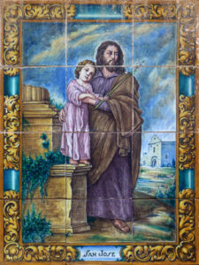 Inicio Obras 08628. Retablo cerámico. San José y el Niño Jesús. Alcoleja. Alicante. 08628. Retablo cerámico. San José y el Niño Jesús. Alcoleja. Alicante. Código08628Tipo de obraRetablo cerámicoFunciónDevocionalTipo de panelPictóricoAutorMorilla Serrano, FranciscoTallerEl Carmen. FábricaFuente de autoríaFirmadoCronología1943-1952Fuente de la cronologíaPeriodo de actividad del tallerDimensiones0,45 m. x 0,70 m. (aprox.)Pieza datadaNo Lugar exacto donde se encuentraFachada de domicilio particular. Carrer Metge Serra, 1PoblaciónAlcolejaProvinciaAlicantePaísEspañaSituada en elExteriorLugar de producciónSevillaZona de producciónAndalucíaTécnica decorativaAzulejo plano pintadoTema de decoración o temáticaReligiosa - hagiográficaReproducción de cuadroPersonajes representadosJesús de Nazaret NiñoJosé, SanEstado de conservaciónFachada en mal estado Fuente gráficaLienzo de Bartolomé Esteban Murillo conservado en el Museo de Bellas Artes de Sevilla San José y el Niño. Bartolomé Esteban Murillo. Museo de Bellas Artes de Sevilla Autor de las fotografíasManuel Quiles Pastor. Mayo 2013