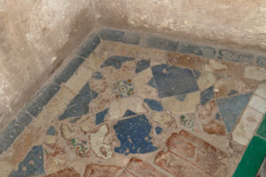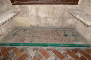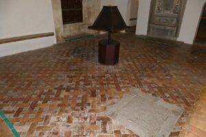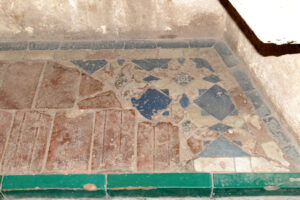 Inicio Obras 08632. Pavimento. Monasterio de San Jerónimo. Granada. 08632. Pavimento. Monasterio de San Jerónimo. Granada. Código08632Tipo de obraOlambrillaPanel de alicatadoPavimentoFunciónArquitectónicaAutorDesconocidoCronología1543. ca.Fuente de la cronologíaEstimación en base a la datación de algunas olambrillasPieza datadaNo Lugar exacto donde se encuentraSala de Profundis del Monasterio de San Jerónimo. Calle Rector López Argüeta, 9PoblaciónGranadaProvinciaGranadaPaísEspañaSituada en elInteriorLugar de producciónGranadaZona de producciónAndalucíaTécnica decorativaAlicatadoAristaEstado de conservaciónDeficiente. Riesgo alto de destrucción Más datosCombinación de piezas de alicatado con olambrillas de arista. ConjuntoGranada. Monasterio de San Jerónimo Autor de las fotografíasAntonio Entrena Aznarte. Agosto 2025
