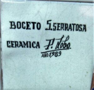 Inicio Obras 08642. Retablo cerámico. Sagrada Familia. Marbella. Málaga. 08642. Retablo cerámico. Sagrada Familia. Marbella. Málaga. Código08642Tipo de obraRetablo cerámicoFunciónDevocionalTipo de panelPictóricoAutorLobo de la Vallina, PedroFuente de autoríaFirmadoCronología1989Fuente de la cronologíaDatado en la obraDimensiones1,40 m. x 2,00 m. (aprox.)Pieza datadaSi Lugar exacto donde se encuentraPatio del Colegio Las Chapas, Urb. las Chapas, s/nPoblaciónMarbellaProvinciaMálagaPaísEspañaSituada en elInteriorLugar de producciónSevillaZona de producciónAndalucíaTécnica decorativaAzulejo plano pintadoTema de decoración o temáticaReligiosa - letíficaEscenaSagrada FamiliaPersonajes representadosJesús de Nazaret NiñoJosé, SanVirgen María Autor de las fotografíasJosé Manuel Leiva Pérez. Julio 2011