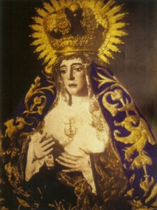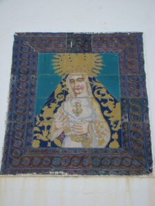 Inicio Obras 08644. Retablo cerámico. Virgen de la Esperanza de Triana. Valencina de la Concepción. Sevilla. 08644. Retablo cerámico. Virgen de la Esperanza de Triana. Valencina de la Concepción. Sevilla. Código08644Tipo de obraRetablo cerámicoFunciónDevocionalTipo de panelPictóricoAutorDesconocidoCronología1920. ca.Fuente de la cronologíaEstimaciónDimensiones0,45 m. x 0,60 m. (aprox.)Pieza datadaNo Lugar exacto donde se encuentraFachada de domicilio particular. Calle Gran Capitán, 12PoblaciónValencina de la ConcepciónProvinciaSevillaPaísEspañaSituada en elExteriorLugar de producciónSevillaZona de producciónAndalucíaTécnica decorativaMixta de cuerda seca y azulejo plano pintadoTema de decoración o temáticaReligiosa - pasionistaPersonajes representadosVirgen MaríaAdvocacionesEsperanzaEsperanza de TrianaEstado de conservaciónAlguna zona en mal estado Fuente gráficaFotografía que se adjunta en la galería Fotografía que debió servir de fuente para pintar el retablo. Autor de las fotografíasAlfonso García García. Enero 2011