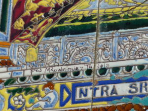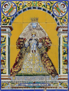 Inicio Obras 08646. Retablo cerámico. Virgen de los Reyes. Olivares. Sevilla. 08646. Retablo cerámico. Virgen de los Reyes. Olivares. Sevilla. Código08646Tipo de obraRetablo cerámicoFunciónDevocionalTipo de panelPictóricoAutorDesconocidoTallerManuel Rodríguez Pérez de Tudela. FábricaFuente de autoríaFirmadoCronologíaDécada de 1920Fuente de la cronologíaEstimaciónDimensiones0,60 m. x 0,80 m. (aprox.)Pieza datadaNo Lugar exacto donde se encuentraFachada de la Iglesia Parroquial de Nuestra Señora de las NievesPoblaciónOlivaresProvinciaSevillaPaísEspañaSituada en elExteriorOrigenProcede del interior de la misma iglesia donde se ubicaLugar de producciónSevillaZona de producciónAndalucíaTécnica decorativaMixta de cuerda seca y azulejo plano pintadoTema de decoración o temáticaReligiosa - letíficaEscenaVirgen con el NiñoPersonajes representadosJesús de Nazaret NiñoVirgen MaríaAdvocacionesReyesEstado de conservaciónPiezas rotas Autor de las fotografíasJesús Marín García. Julio 2016